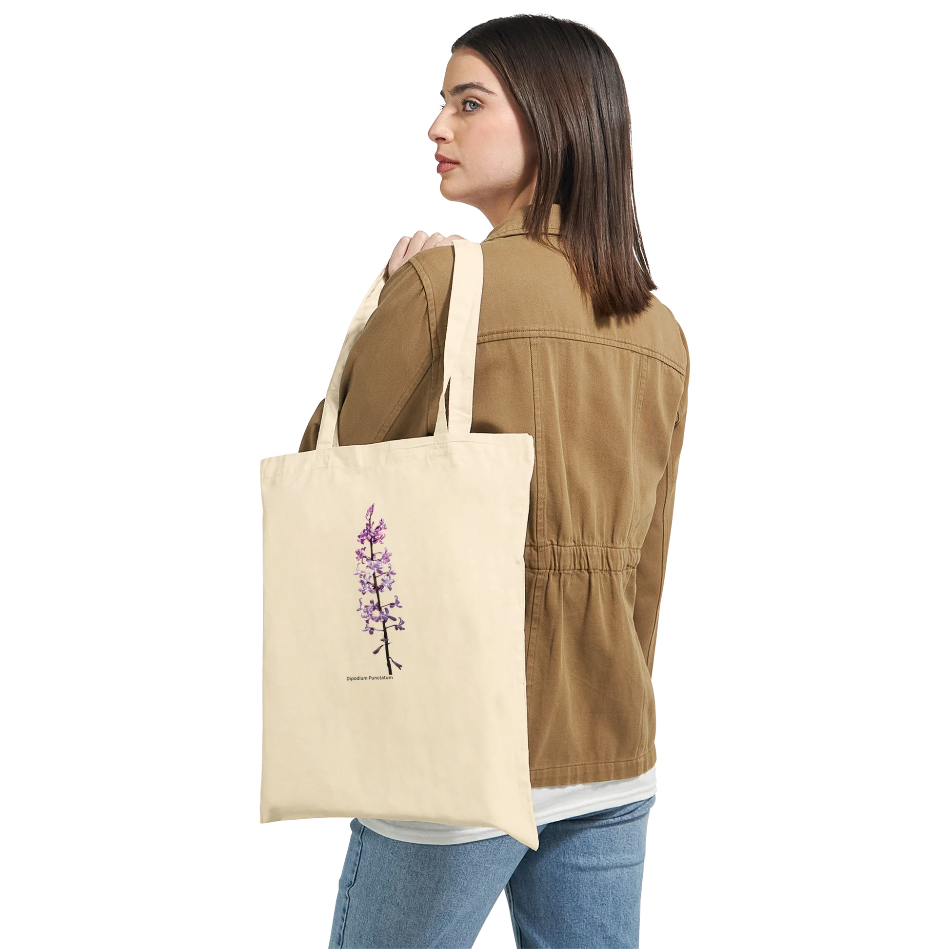 Are you an obsessed grower of orchids, or someone who just loves their beauty? The Dipodium Punctatum orchid tote bag is a practical, high-quality bag, with a beautiful orchid print. It is a great way for you to show your passion for orchids. They are available in three sizes, providing comfort with style, at the beach or, out in town.