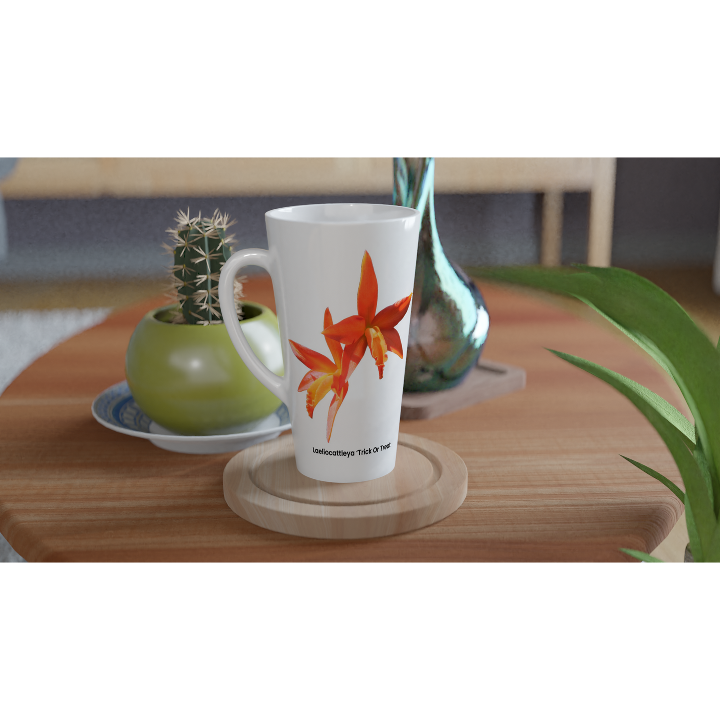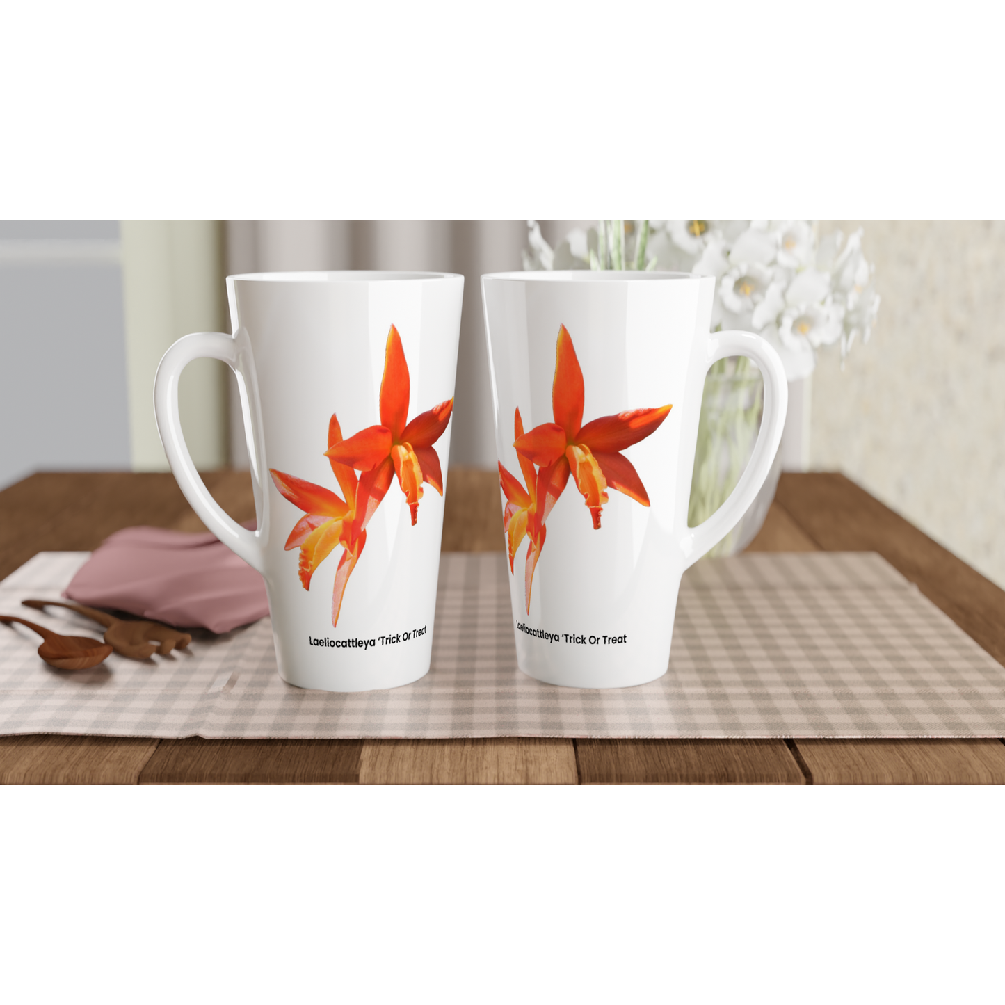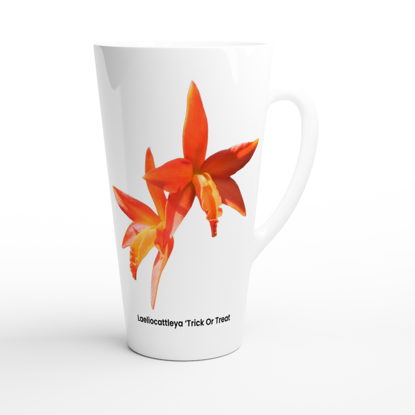 The Laeliocattleya Trick Or Treat Orchid latte mug is a perfect gift for people who also love and enjoy orchids. It is also great for orchid or garden club/societies raffles prizes, show prizes and annual awards prizes.