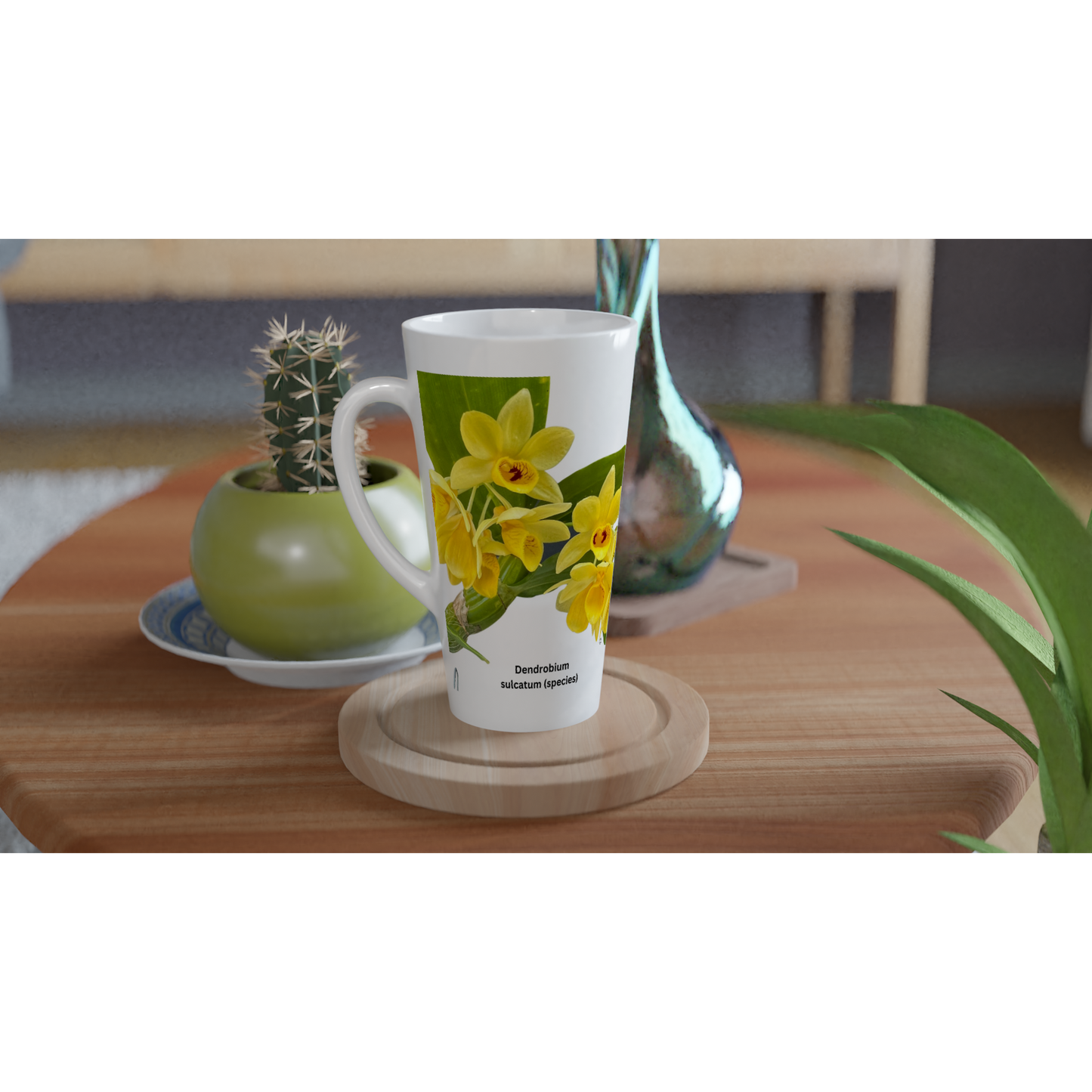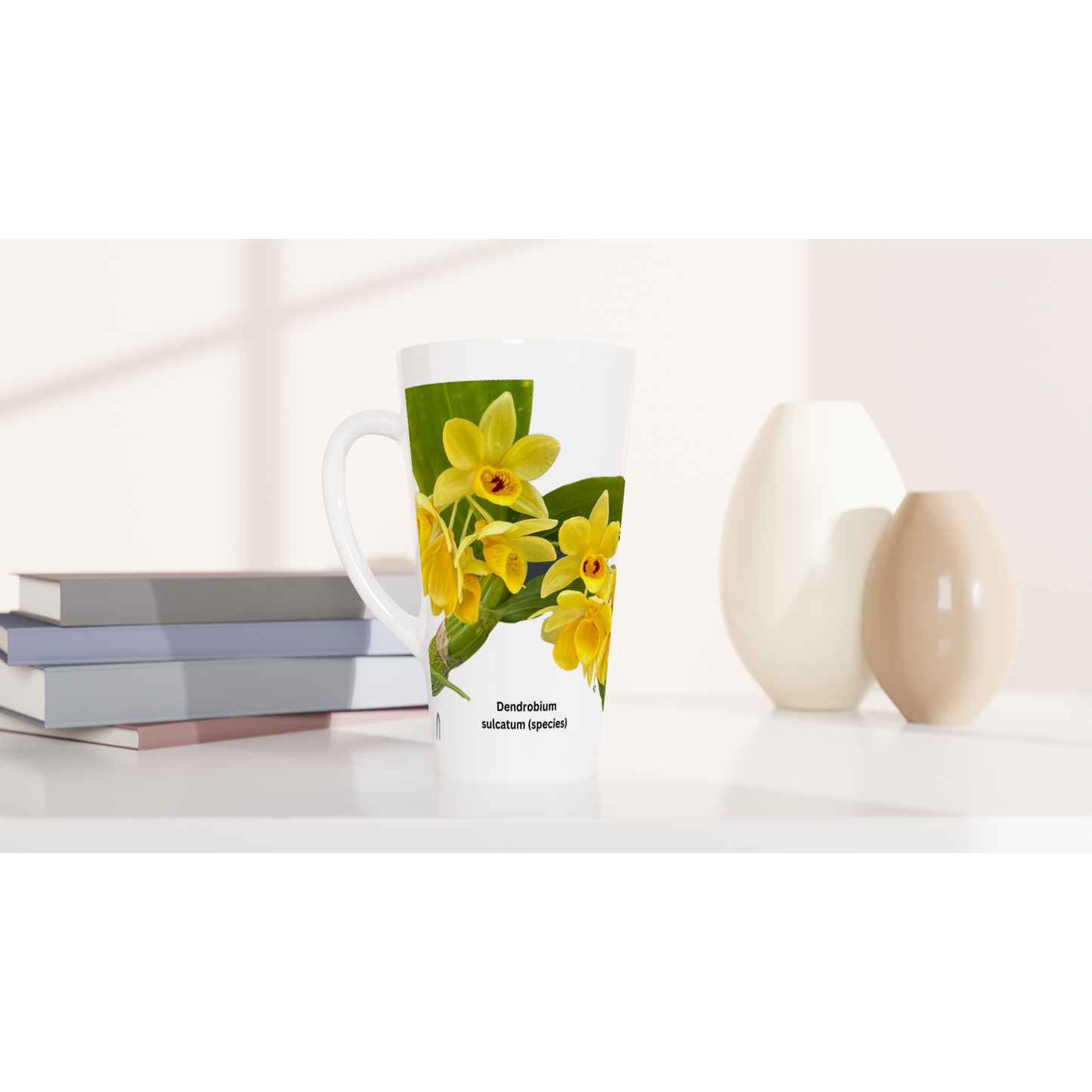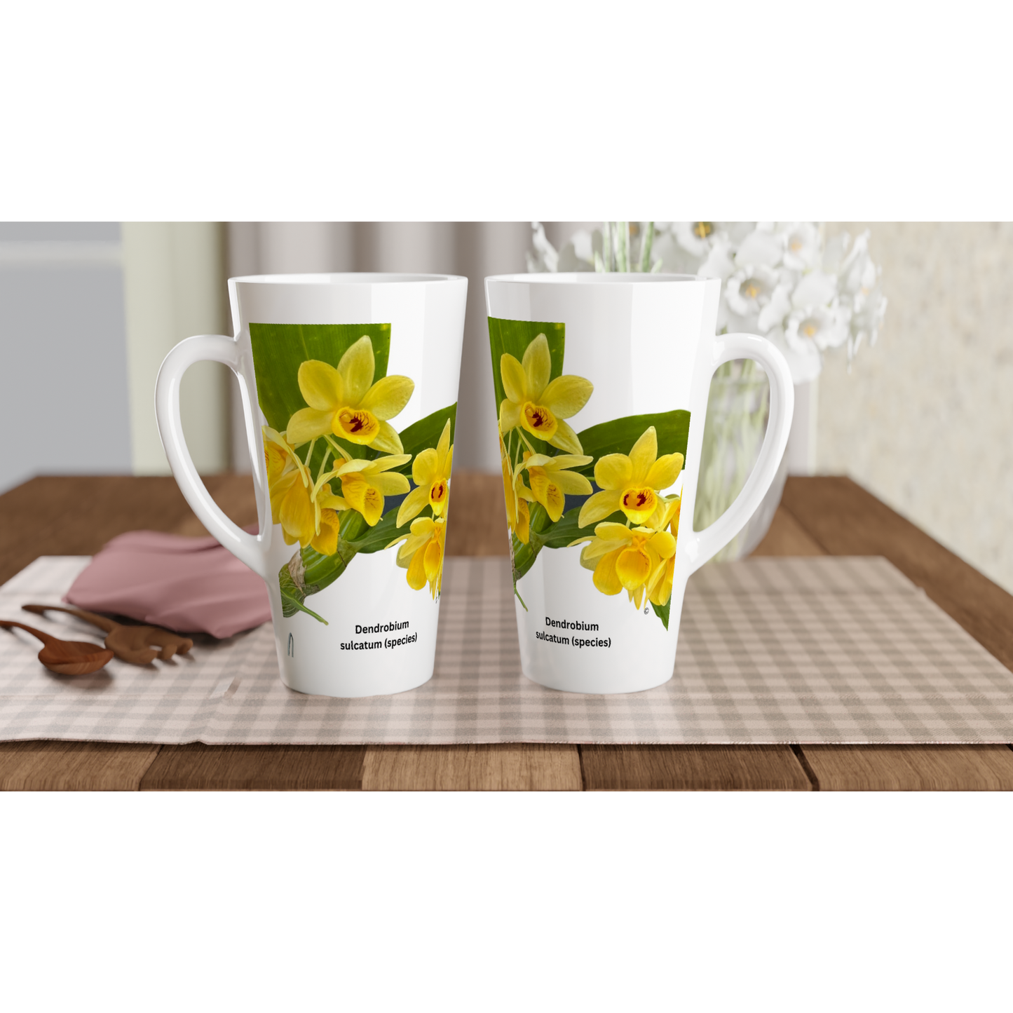 The Dendrobium Sulcatum Orchid latte mug is a perfect gift for people who also love and enjoy orchids. It is also great for orchid or garden club/societies raffles prizes, show prizes and annual awards prizes.