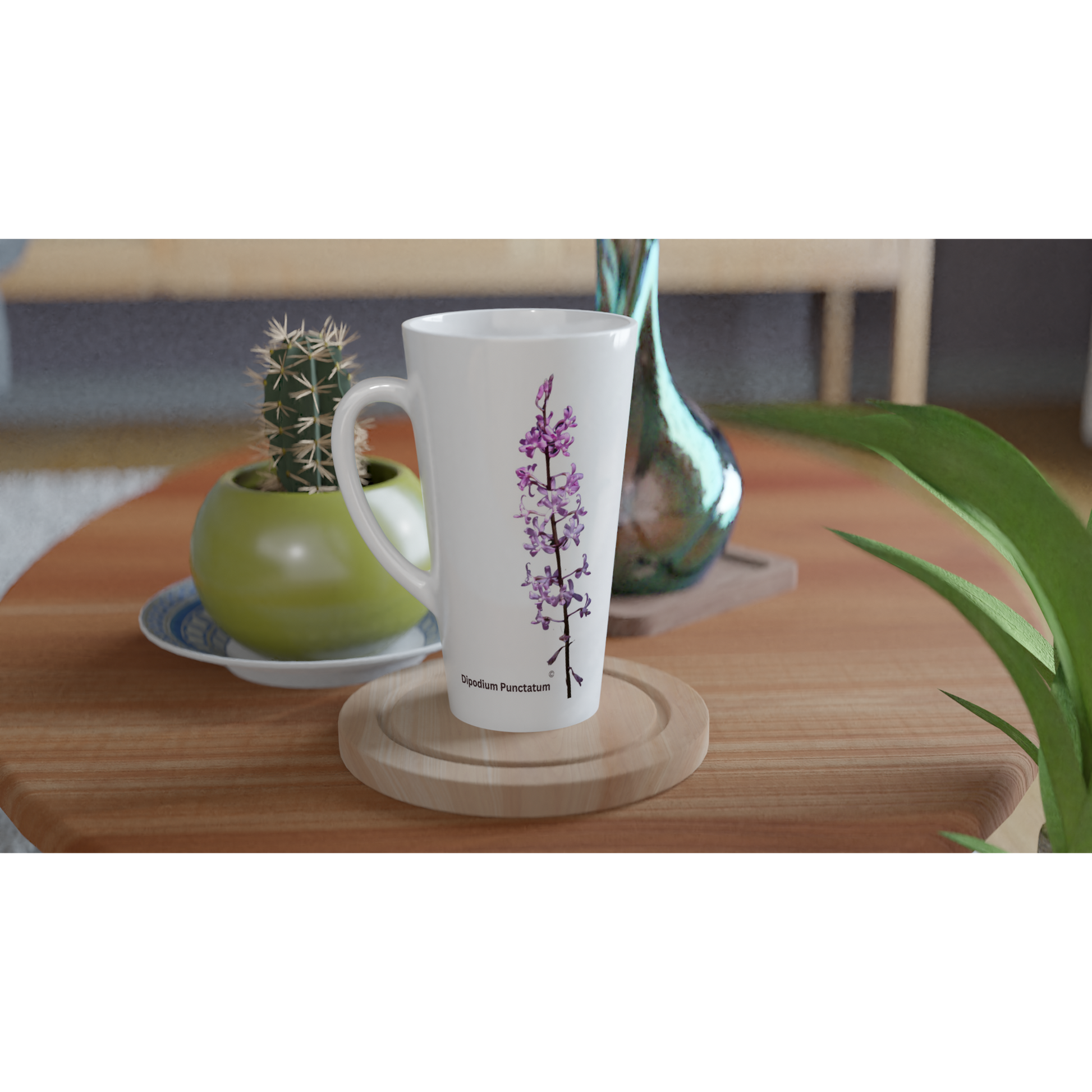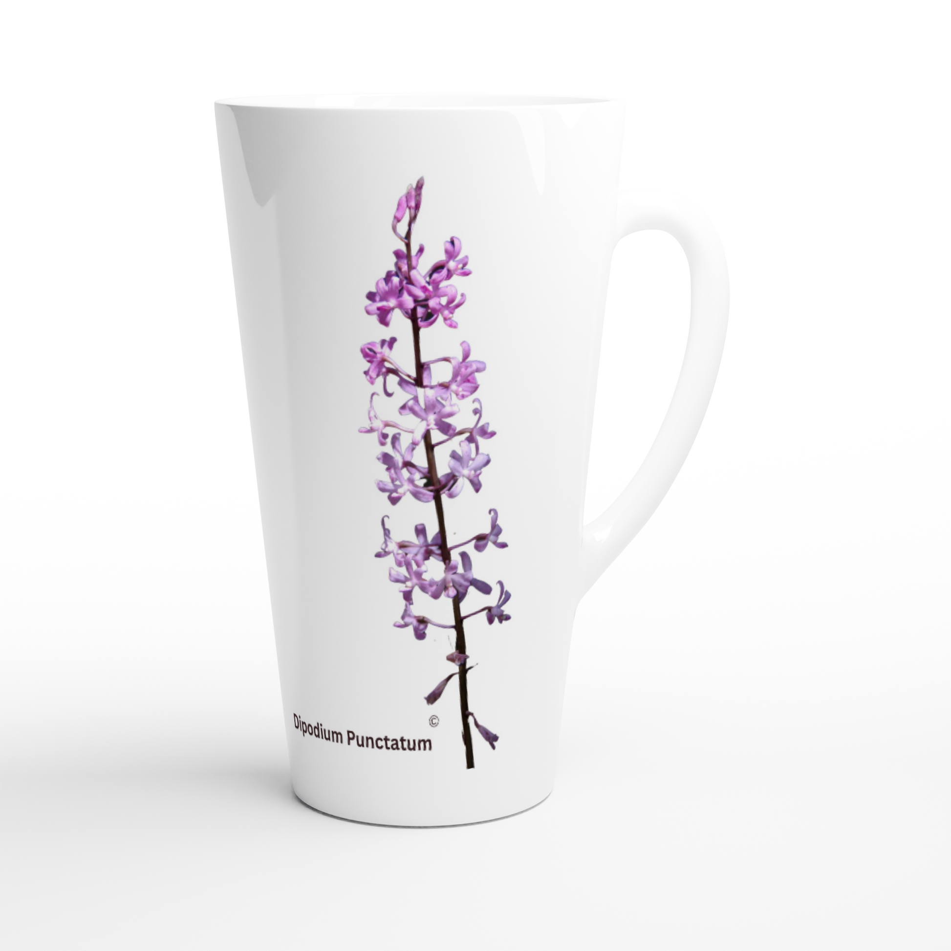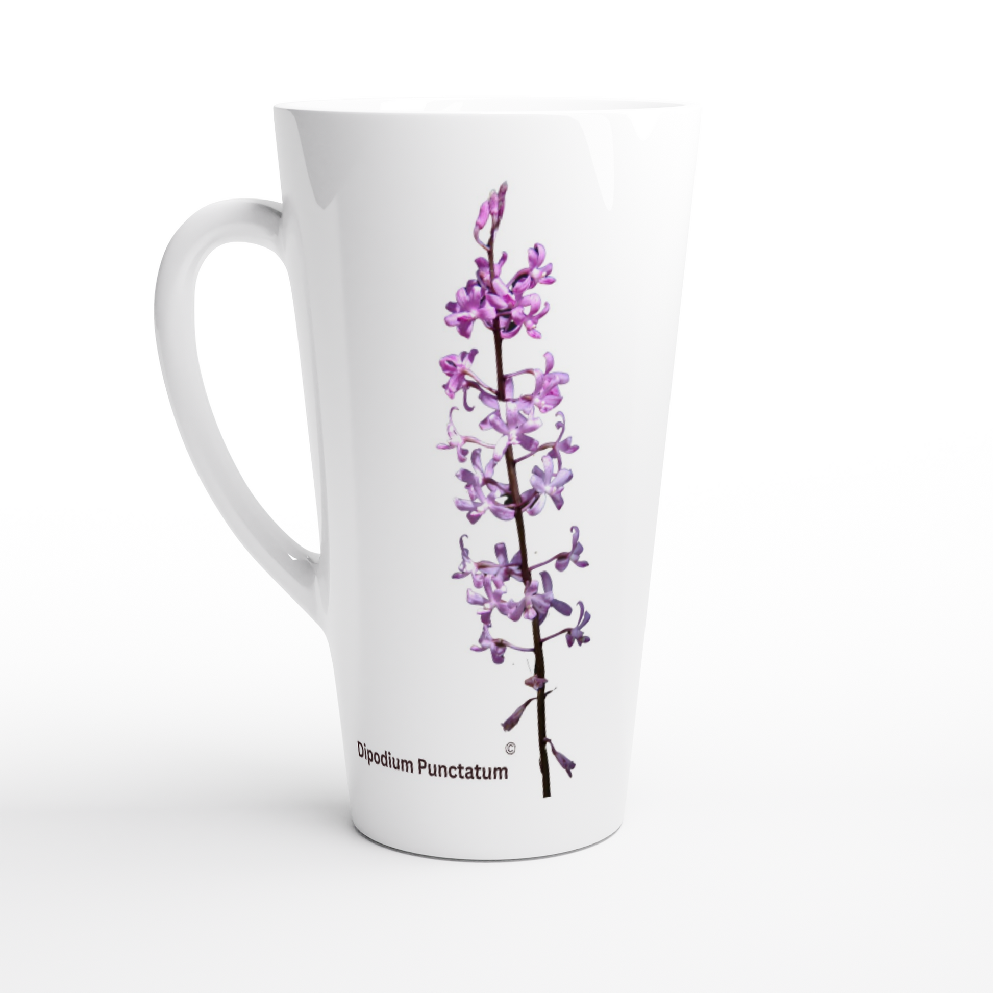 You might be and avid orchid grower, or simply a lover of orchids. With this Dipodium punctatum Orchid latte mug, you can sit down and enjoy your latte, with family or friends, enjoying your love of orchids, whilst you take some special time out in your busy day.