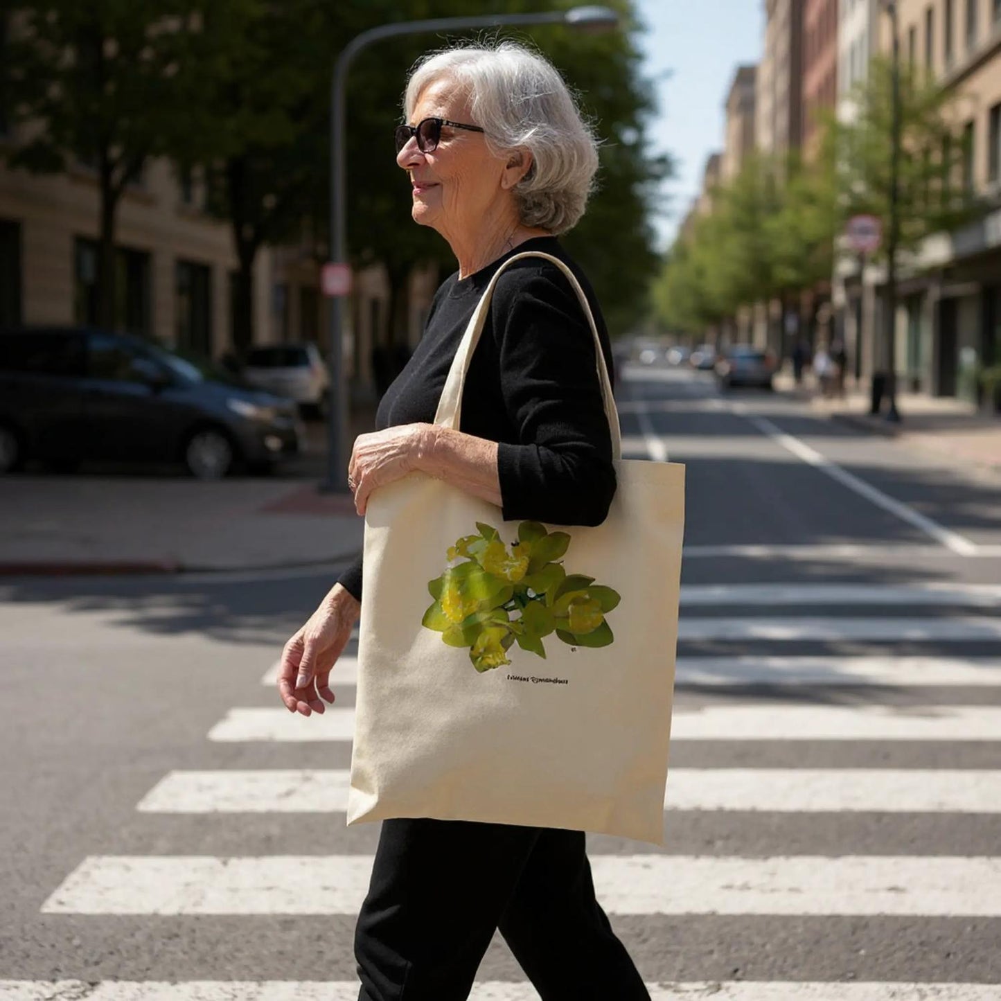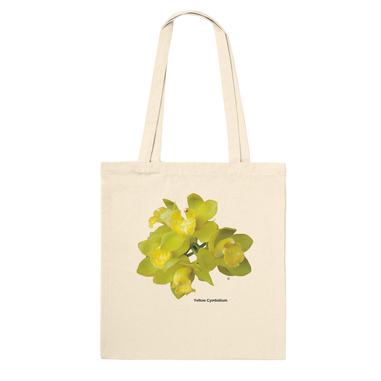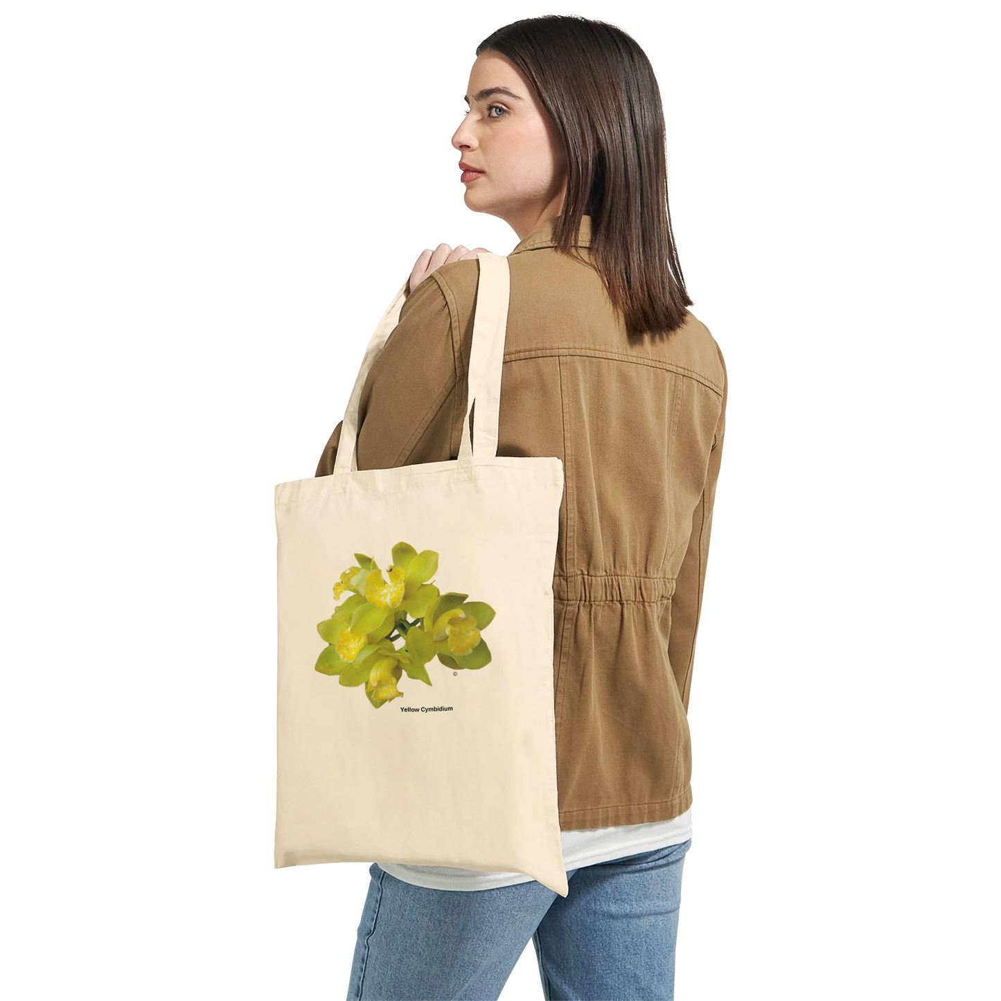 The Yellow Cymbidium Orchid Tote Bag is a practical, high-quality bag, with a beautiful orchid print. It is a great way for you to show your passion for orchids. They are available in three sizes, providing comfort with style, at the beach or, out in town.