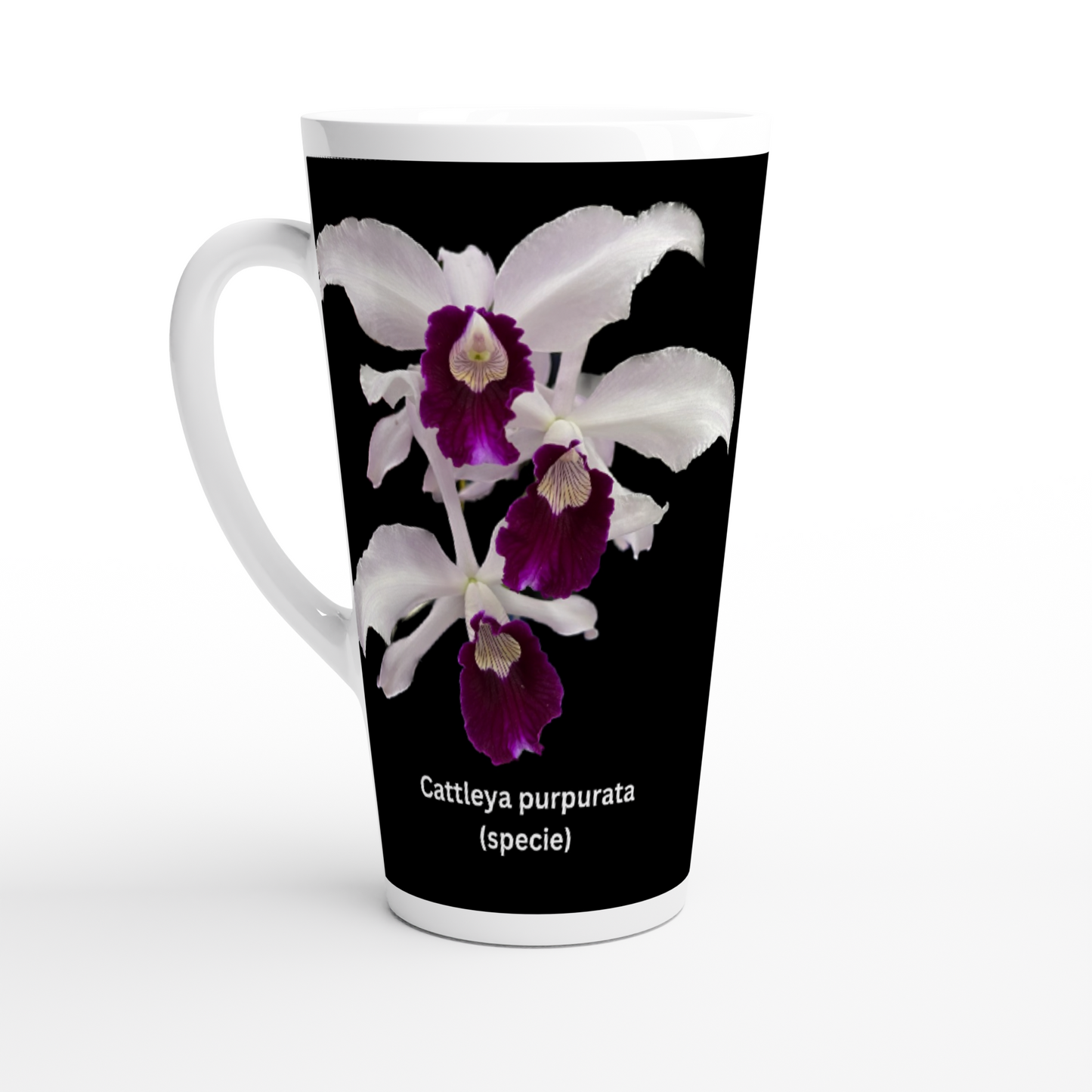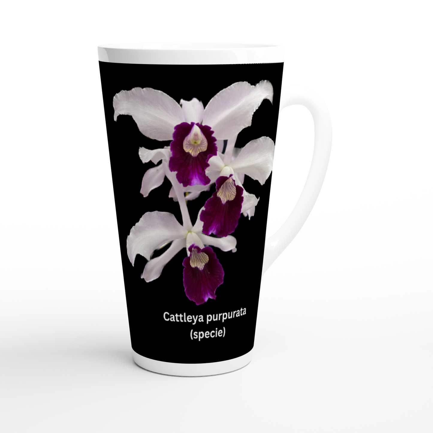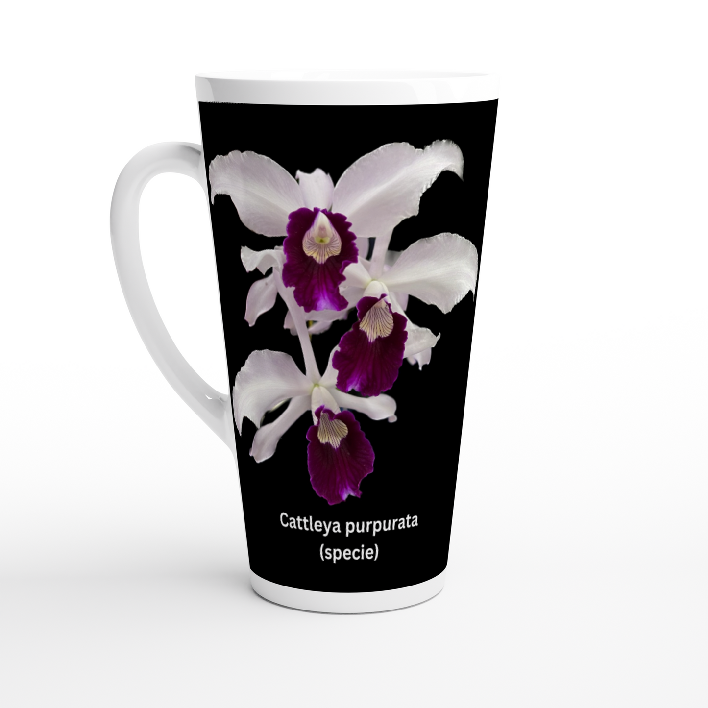 The Cattleya purpurata Orchid latte mug is a perfect gift for people who also love and enjoy orchids. It is also great for orchid or garden club/societies raffles prizes, show prizes and annual awards prizes.