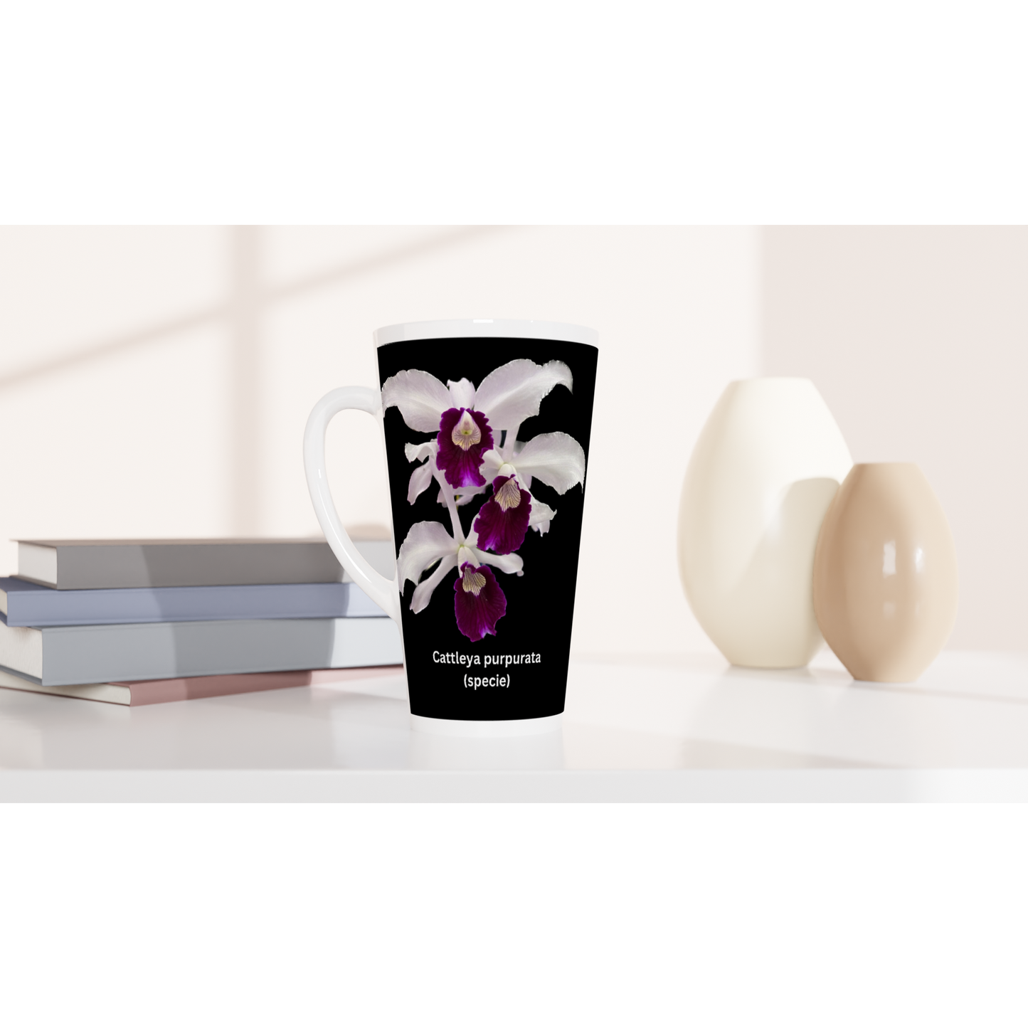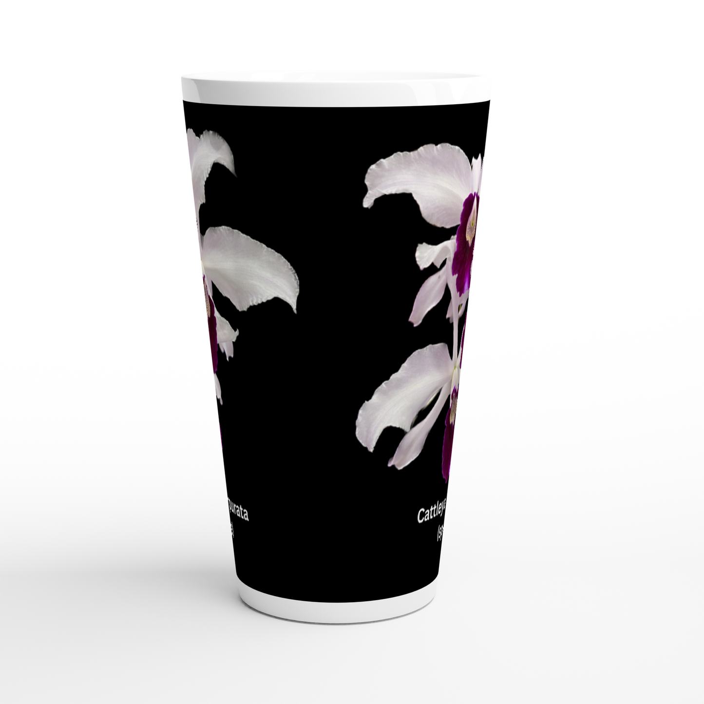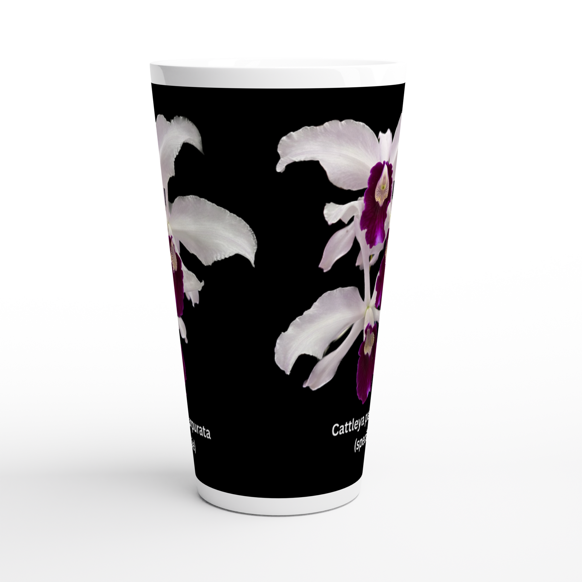 The Cattleya purpurata Orchid latte mug is a perfect gift for people who also love and enjoy orchids. It is also great for orchid or garden club/societies raffles prizes, show prizes and annual awards prizes.