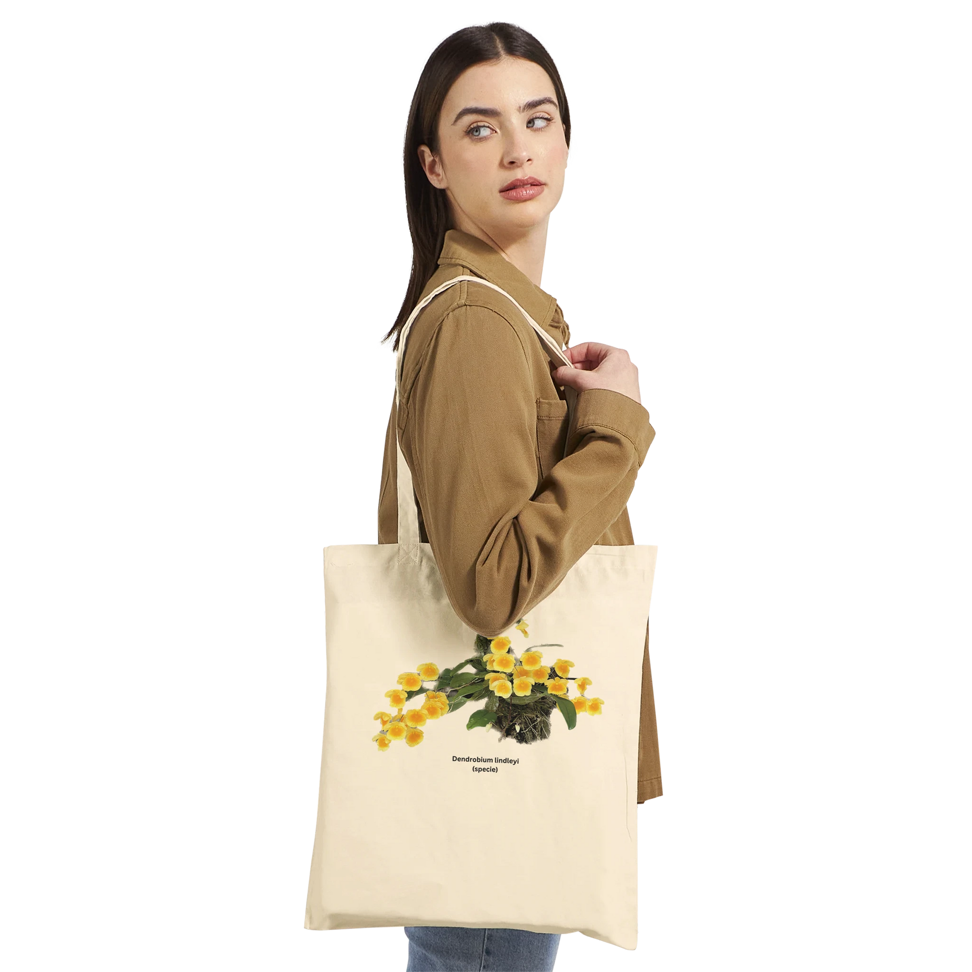 The Den. lindleyi Orchid Tote Bag combines practicality with botanical elegance, perfect for carrying essentials with style.