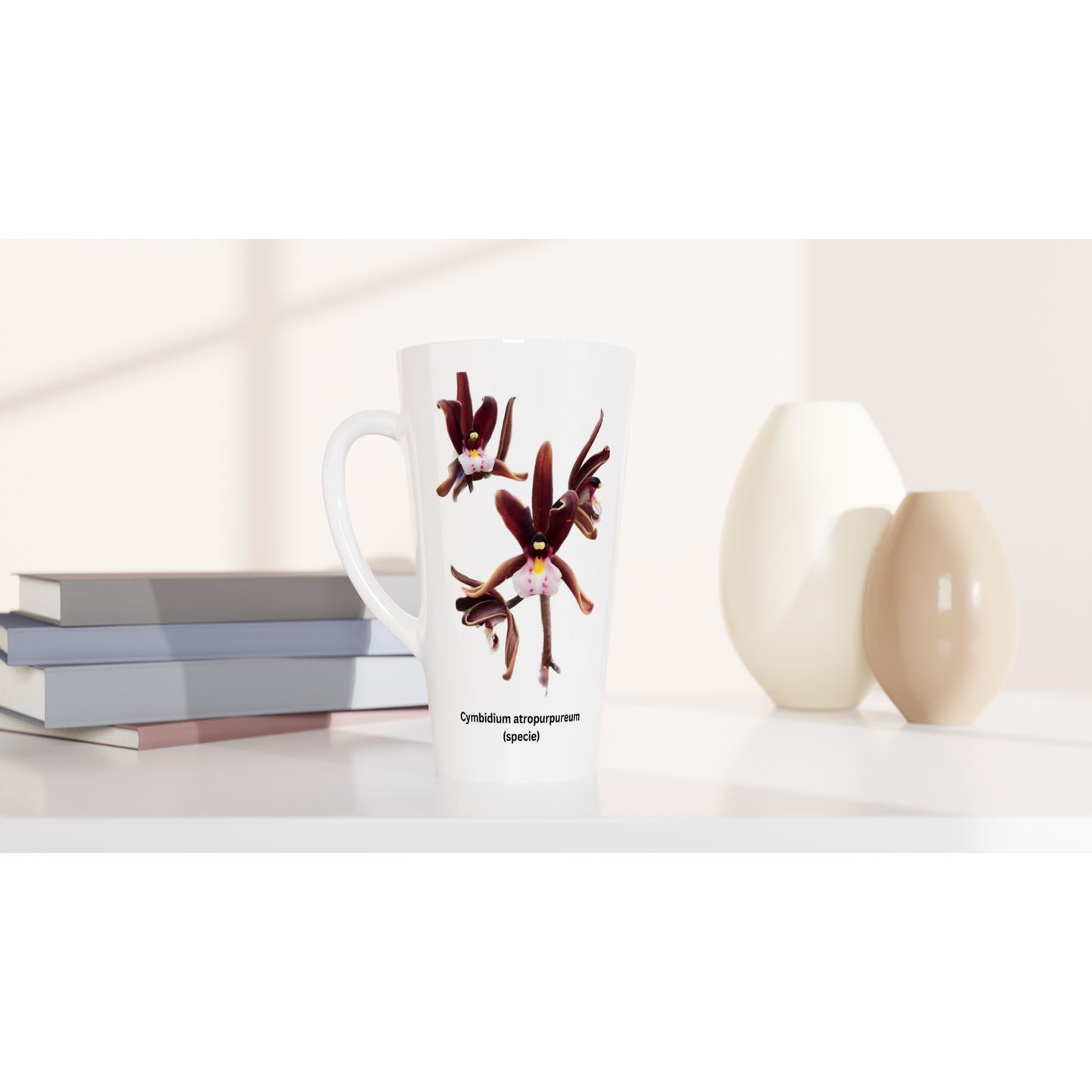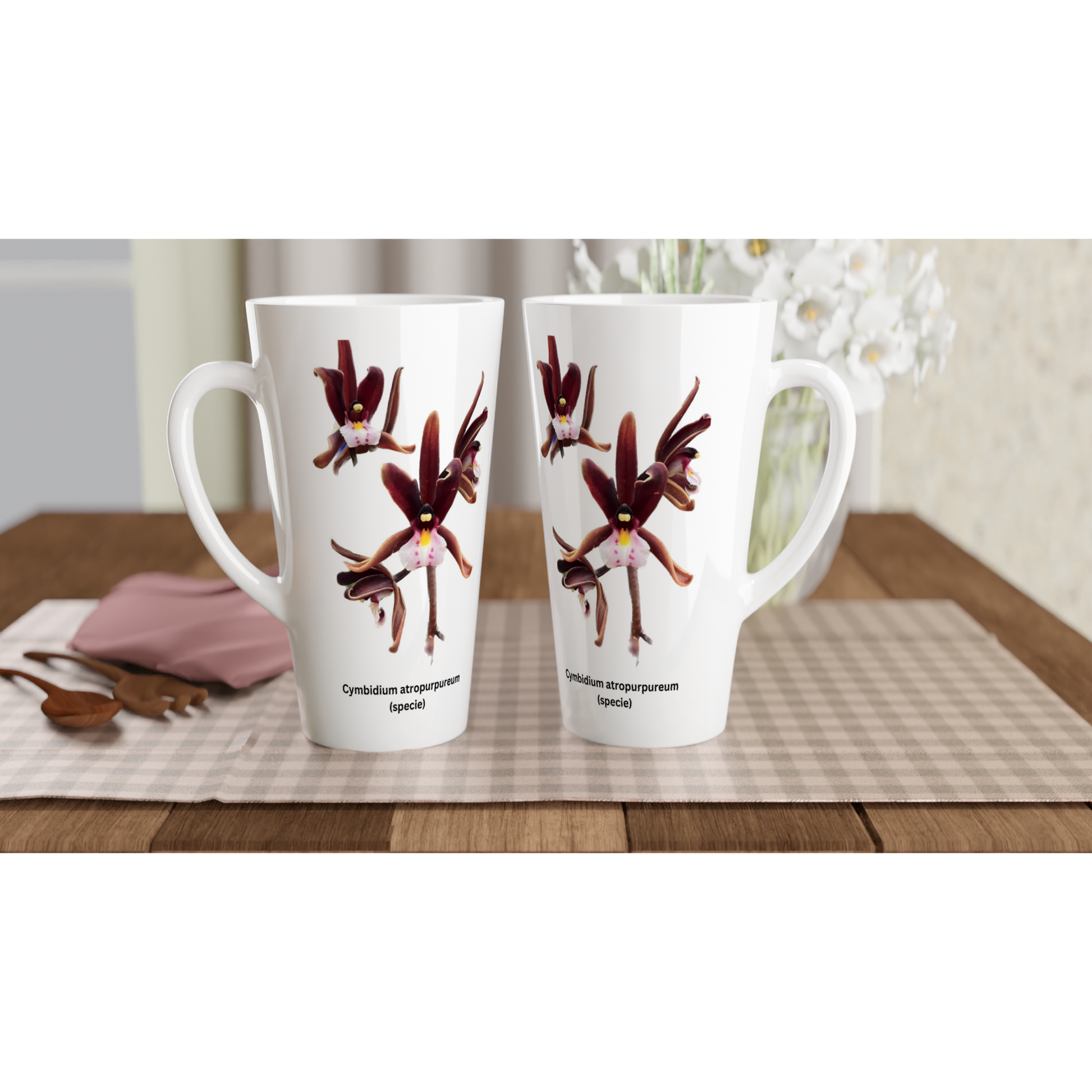 You might be and avid orchid grower, or simply a lover of orchids. With this Cymbidium atropurpureum orchid latte mug, you can sit down and enjoy your latte, with family or friends, enjoying your love of orchids, whilst you take some special time out in your busy day.