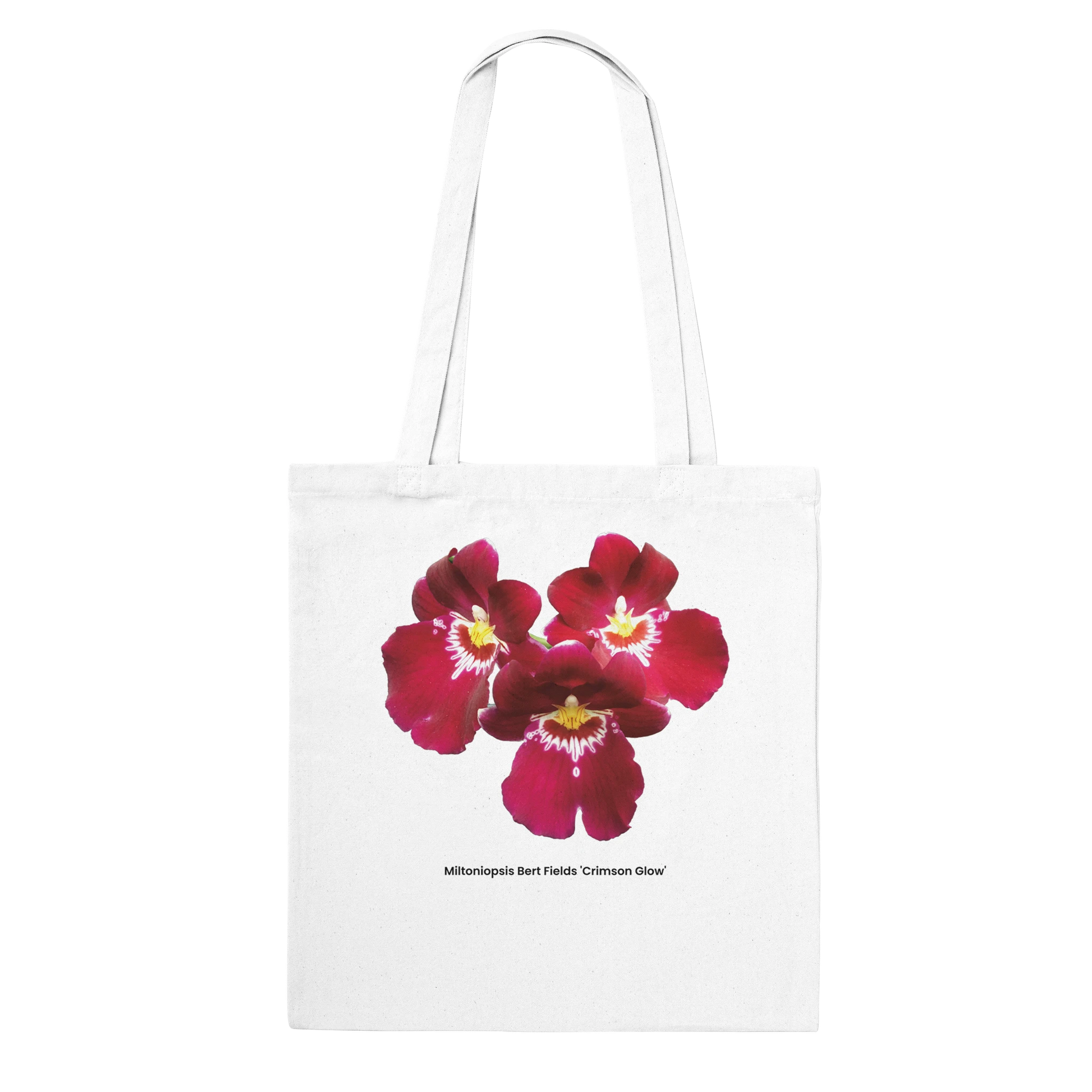 As A Gift: The Miltoniopsis Bert Fields 'Crimson Glow' tote bag is great way to show a family member or friend what they mean to you, and would be a readily used and enjoyed gift. The tote bag can also be use for your orchid or garden club/society raffle prizes, show awards prizes and annual award prizes.